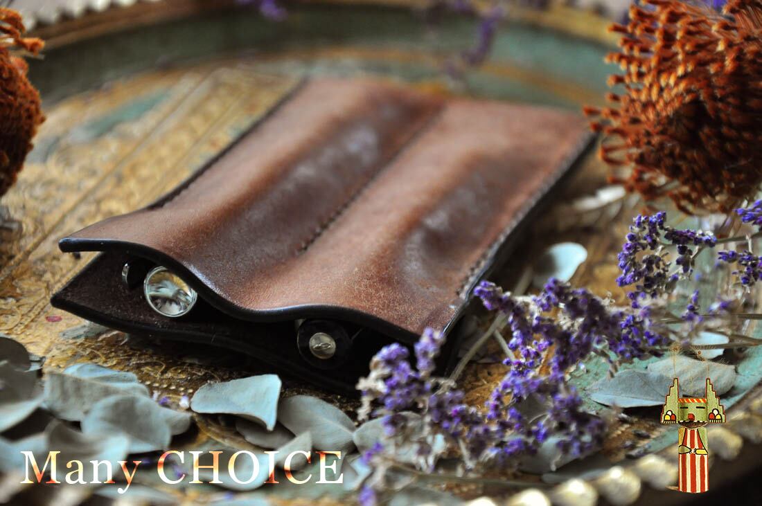 イタリアンレザー・革新のプエブロ・2本差しペンケース(ウォールナット)