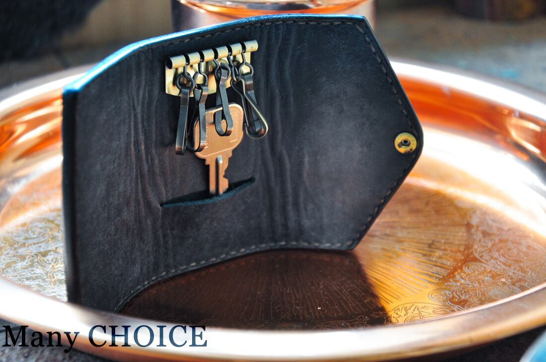 イタリアンレザー・革新のプエブロ・キーケース(ネイビー)