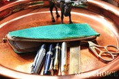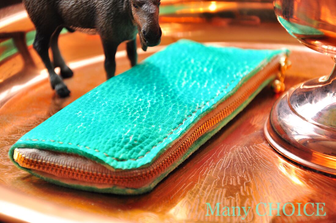 やみつきエルクのL型ペンケース(手染めミントグリーン)