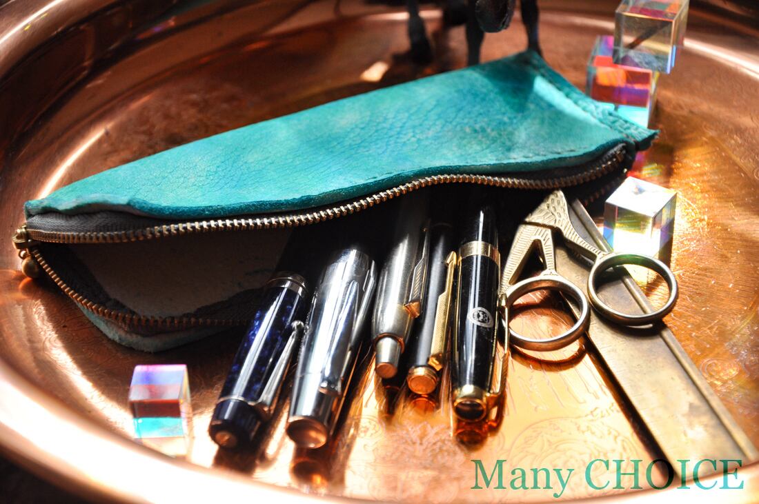 やみつきエルクのL型ペンケース(手染めパシフィックブルー)