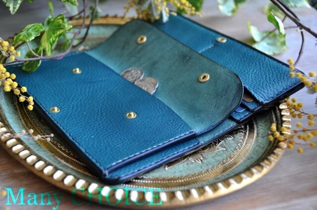 イタリアンオイルレザーアリゾナ・長財布(ターコイズ)
