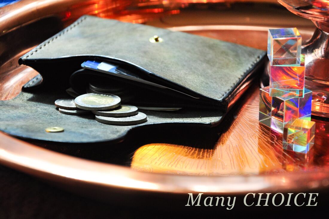 イタリアンレザー・革新のプエブロ・ミニマム財布(グリージオ✖️ネイビー)