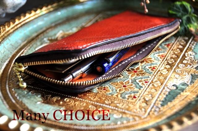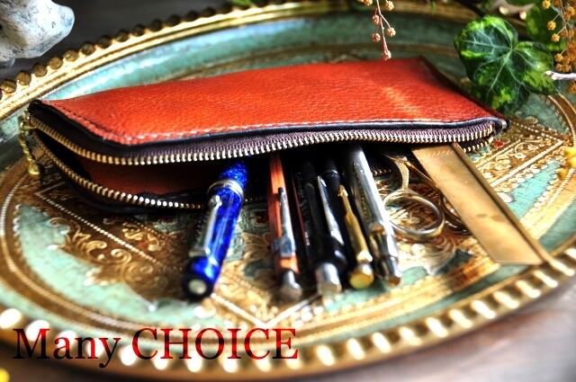 イタリアンオイルレザーアリゾナ・L型ペンケース(ウィスキー)