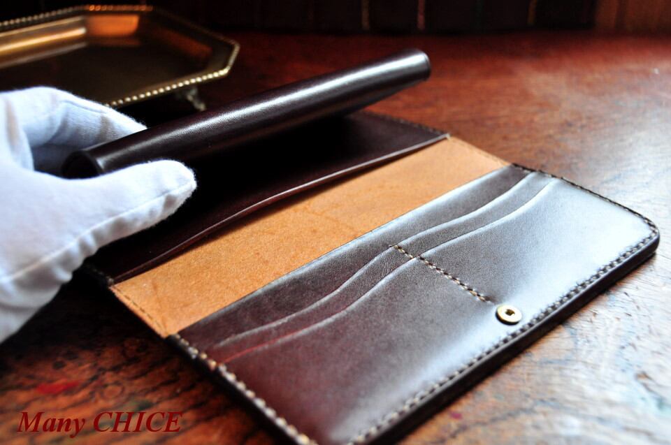 コバ面は磨き・焼きこみ・蠟引き、ワックスを繰り返し施し、時間をかけて、磨き上げていきます。コバにも、染色して、磨き上げています。