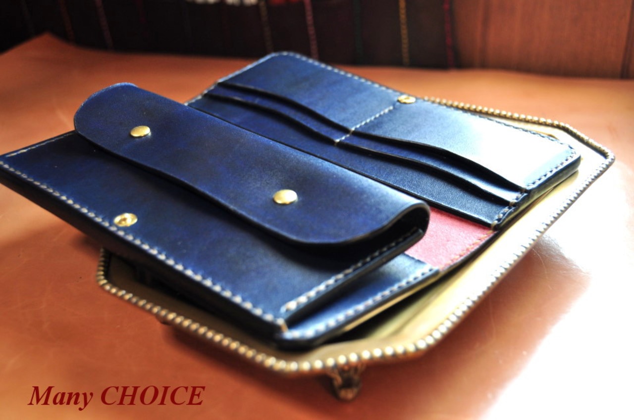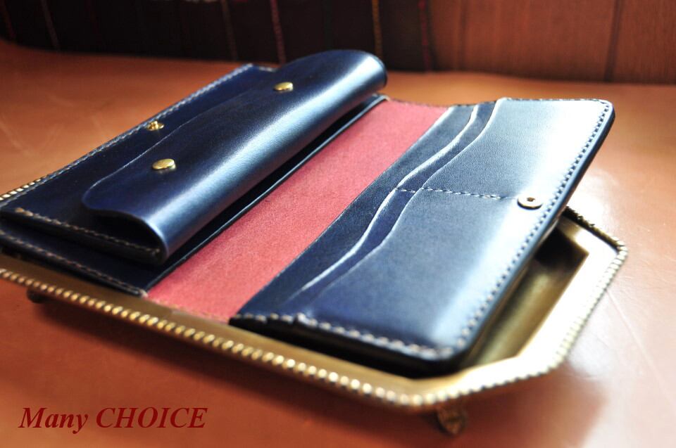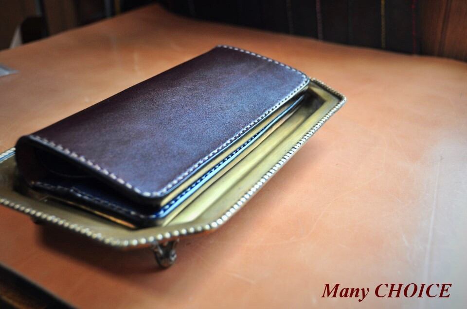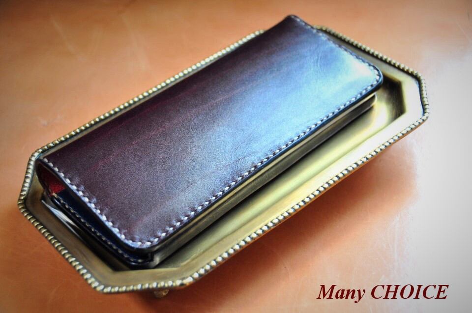 革の宝石・ルガトー・長財布(葡萄酒×紺)