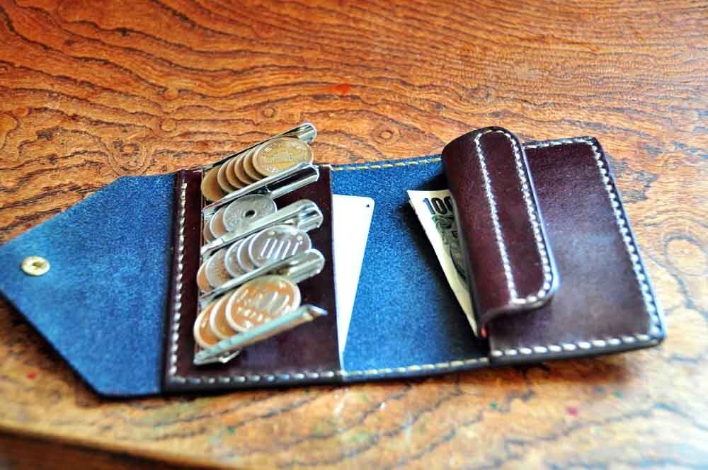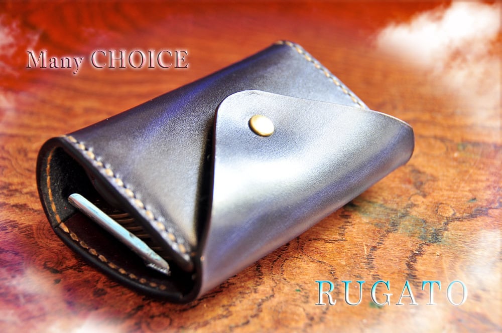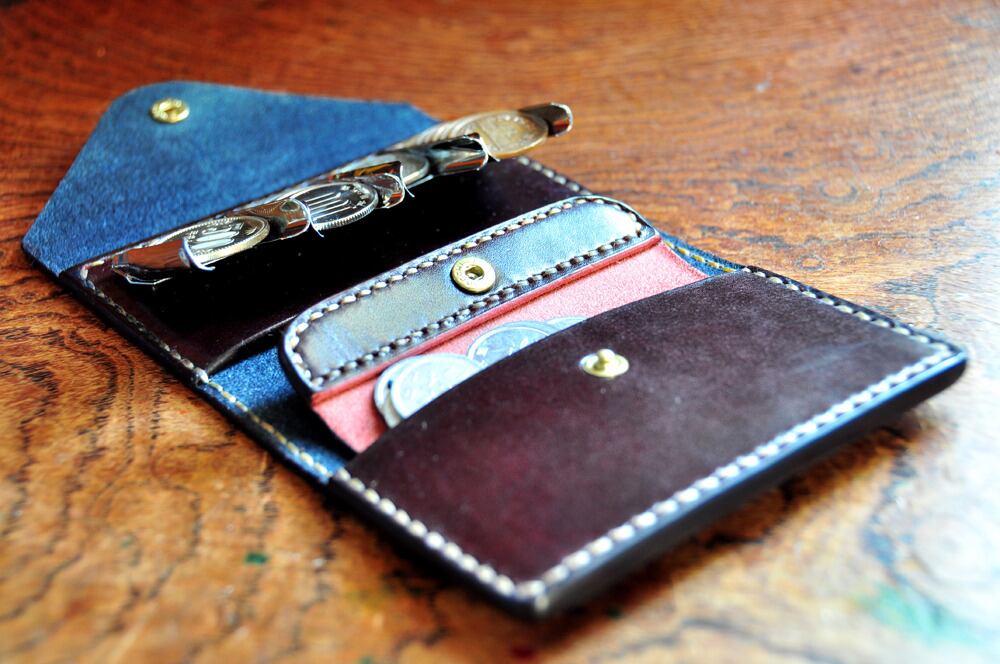 革の宝石・ルガトー・コインキャッチャー財布(紺×葡萄酒)