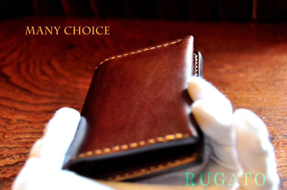 ルガトーは”革の宝石”と呼ばれている牛ヌメ革です。タンニンで鞣す伝統的製法で作られ、ショルダーならではのトラ目と深く透明感のある染色が特徴です。
