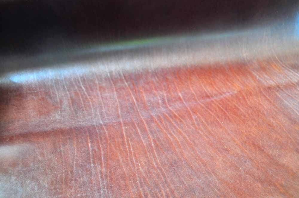 コバ面は磨き・焼きこみ・蠟引き、ワックスを繰り返し施し、時間をかけて、磨き上げていきます。