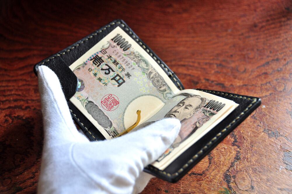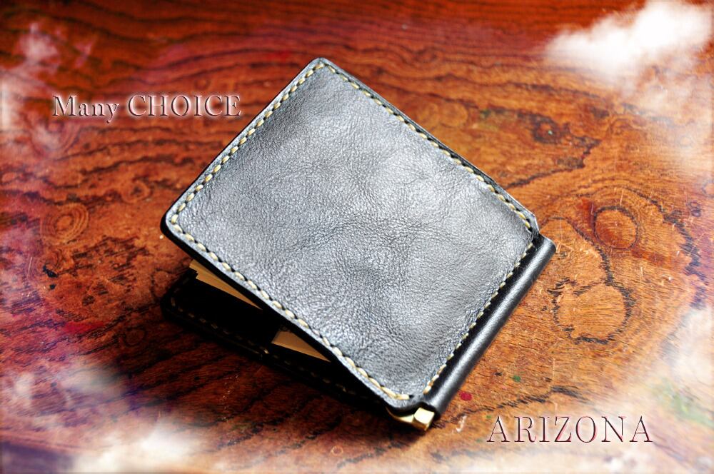 イタリアンオイルレザーアリゾナ・マネークリップ(黒)