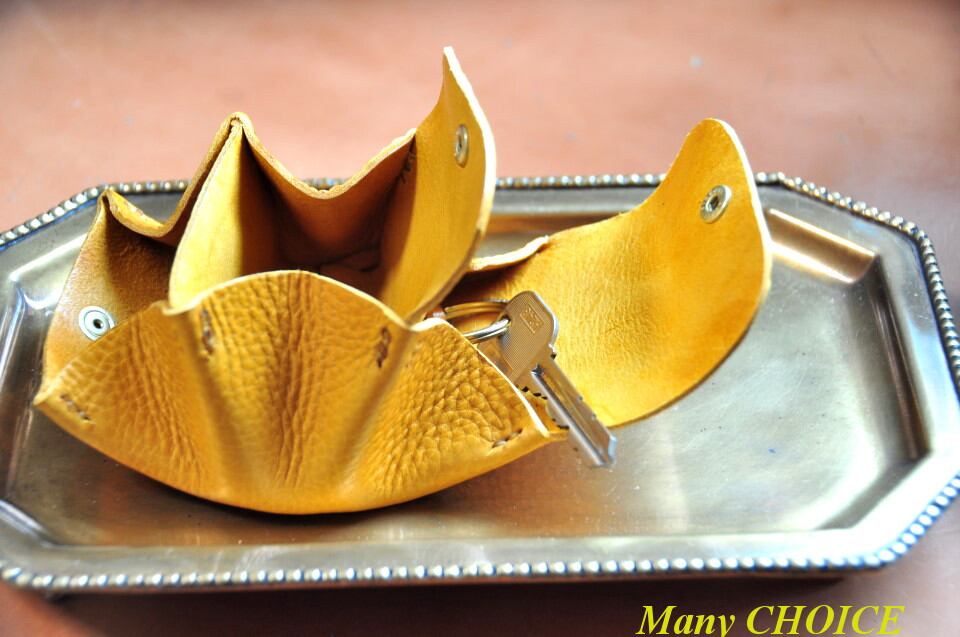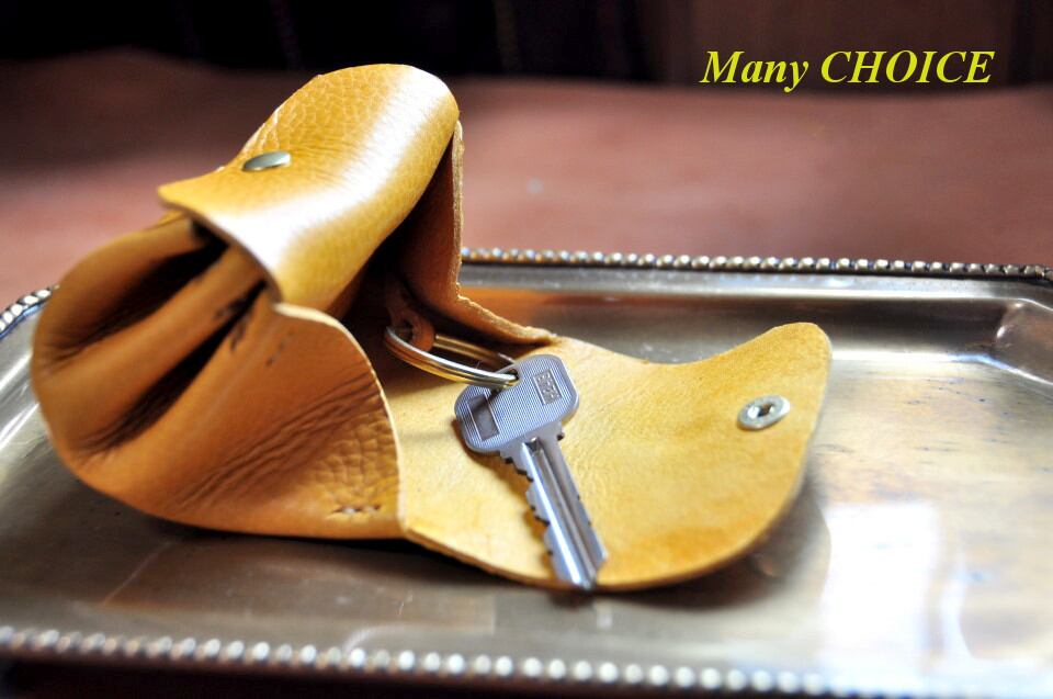 一つのポケットのところに鍵を入れられるように革紐と二重リングをつけて、キーケースと小銭入れを一体化しました。