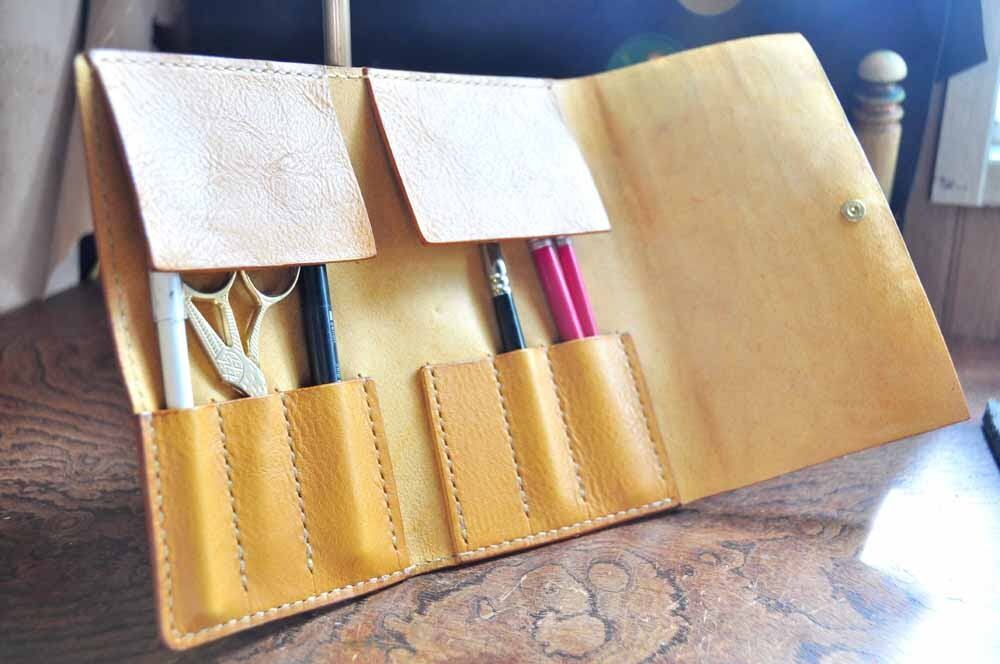 特に黄色系の染料は、ナチュラルのヌメ革を育てるように、他の革とは違う色の変化を見せてくれるので、革好きにはたまらなく面白い色です。おすすめです。