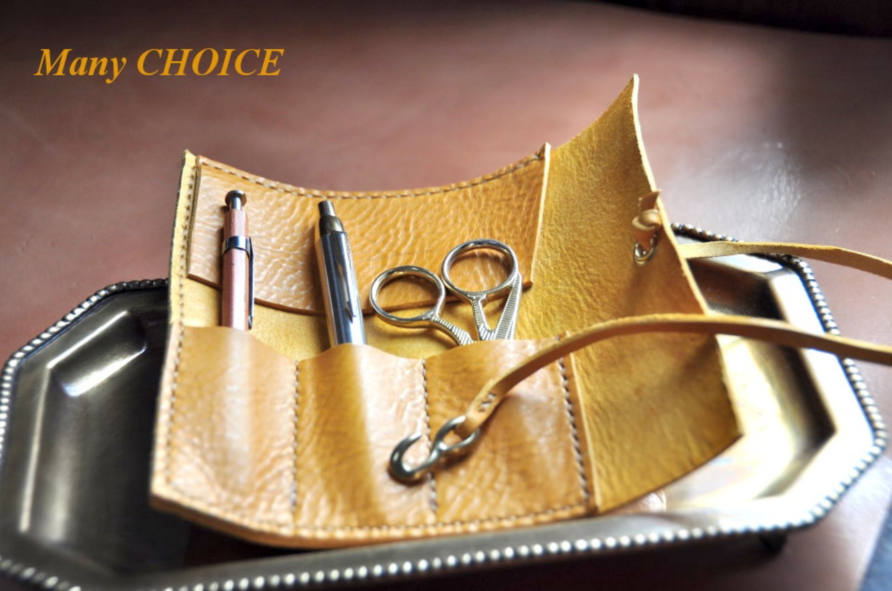 イタリアンオイルレザー・アリゾナ・ロールペンケース(ライトマスタード)