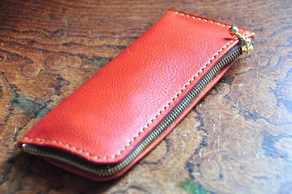 イタリアンオイルレザーアリゾナ・L型ペンケース(オレンジ)