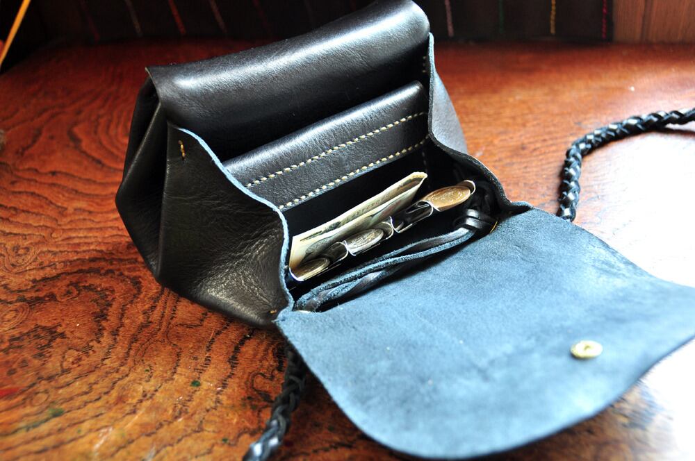 肩紐は編み上げ、一番体側のポケットにはコインキャッチャー。