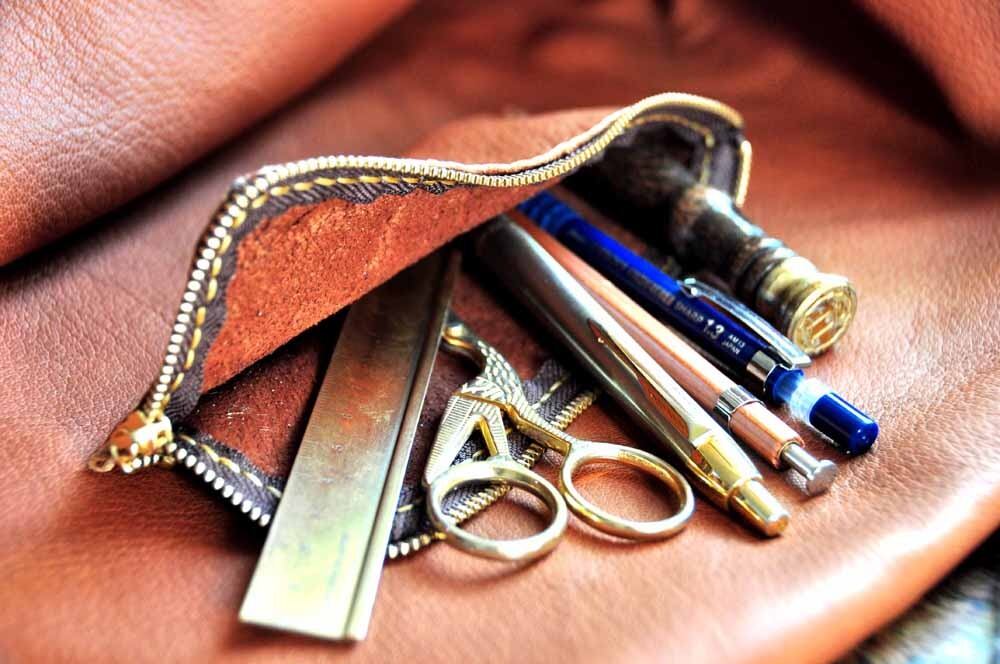 ※もちろん、出来る限り、革のいい部分を使用していますが、タンニン鞣しの革は、革の持っているものが、そのまま出ますので、細かなキズや革の製造工程でできた色ムラなどは、革の味ととらえていただけると、ありがたいです。