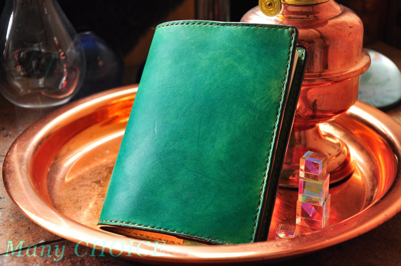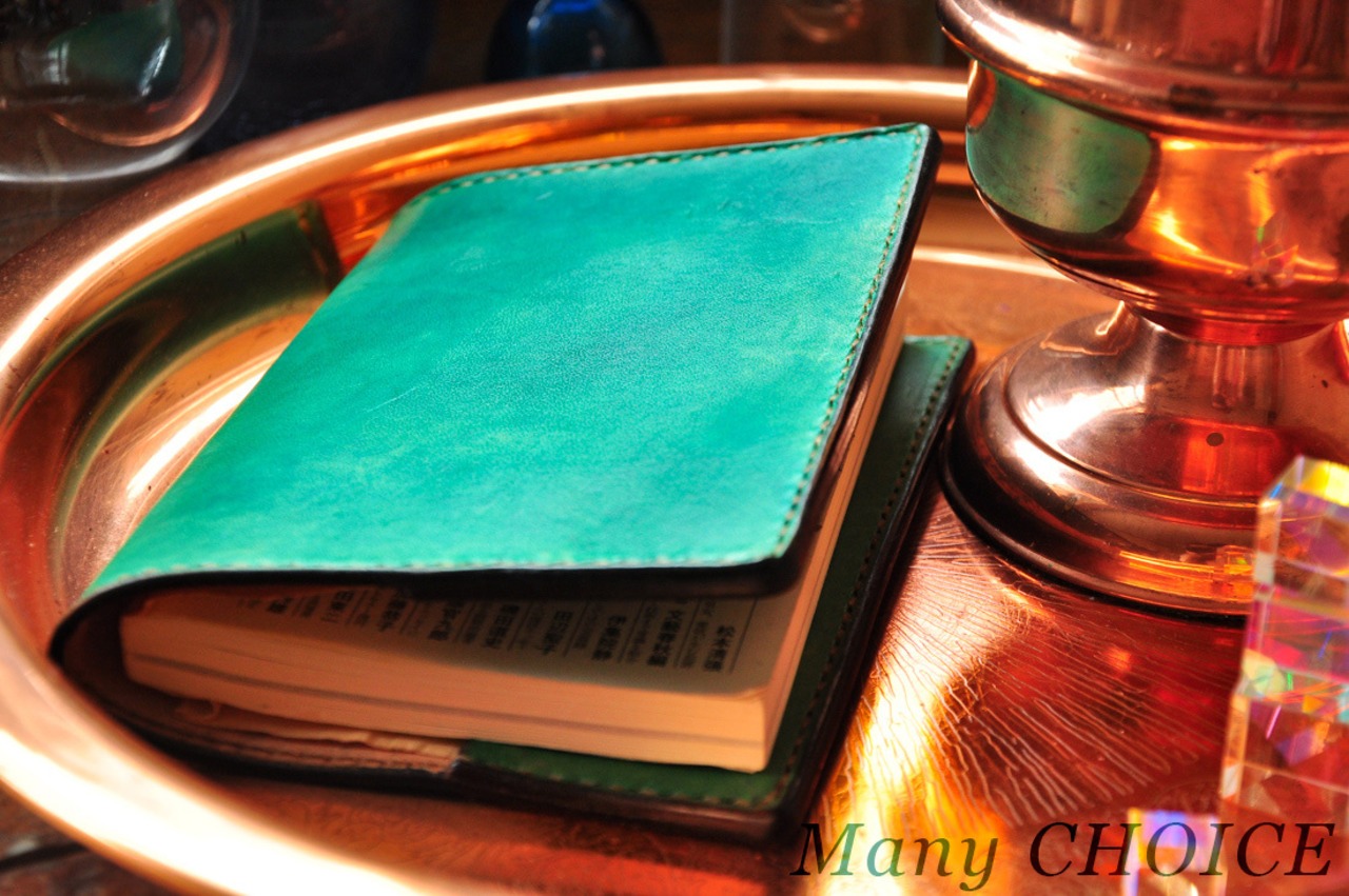 EUヌメ革・ ブックカバー・手染め(グリーン)
