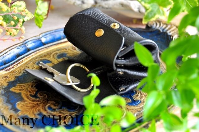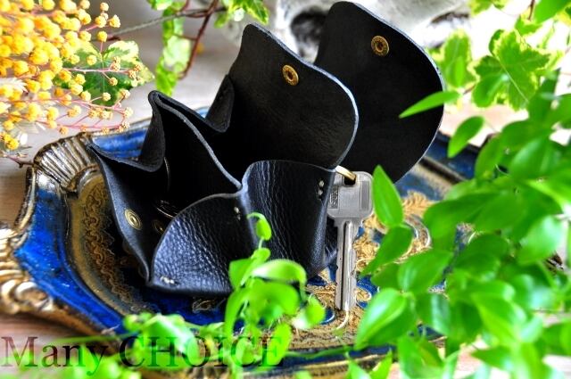 一つのポケットのところに鍵を入れられるように革紐と二重リングをつけて、キーケースと小銭入れを一体化しました。