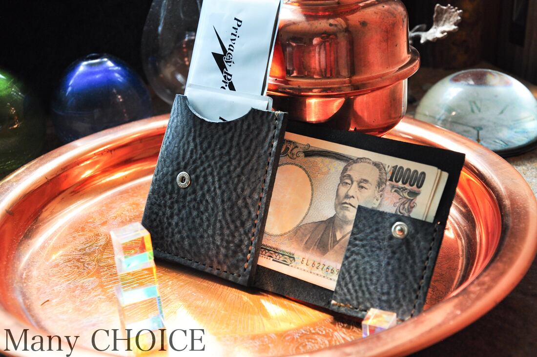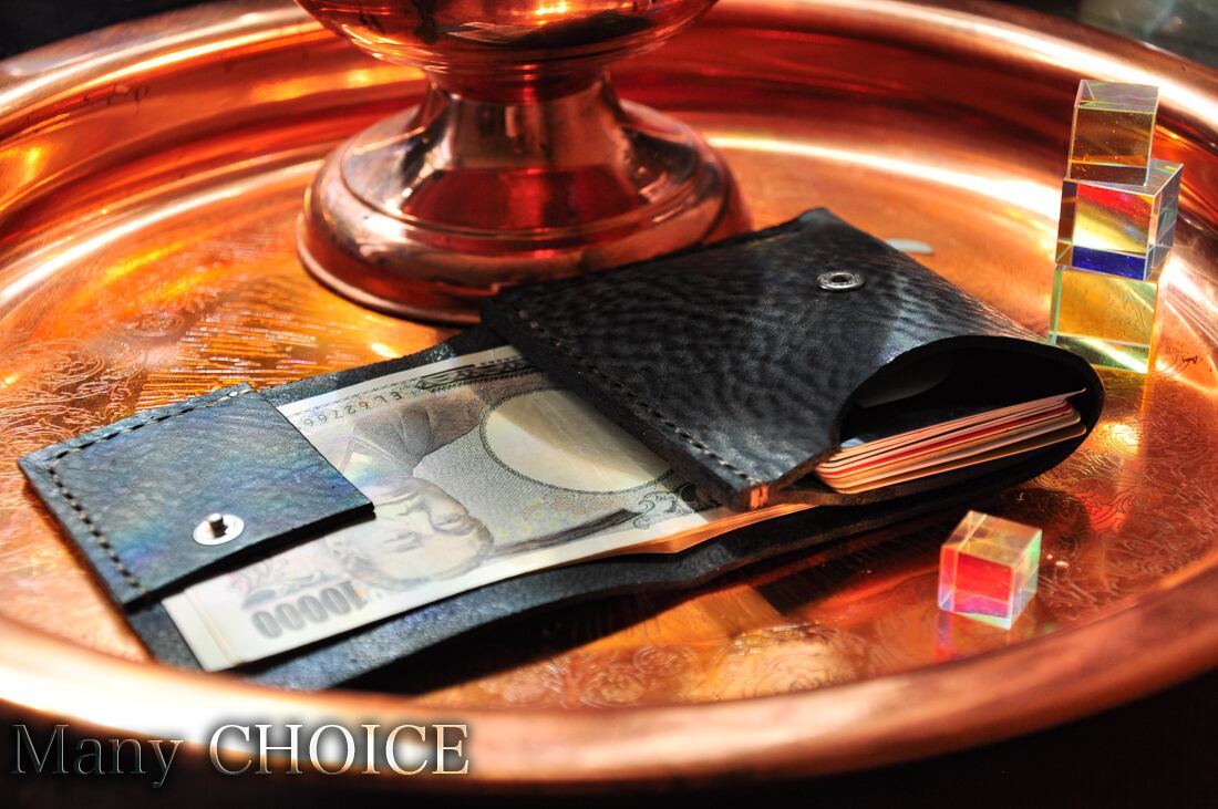 イタリアンバケッタレザー・アラスカ・ミニマム札カード財布(黒)