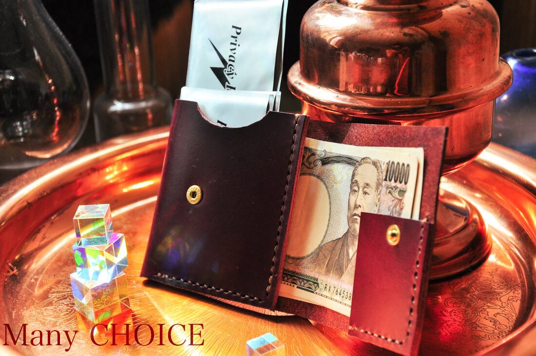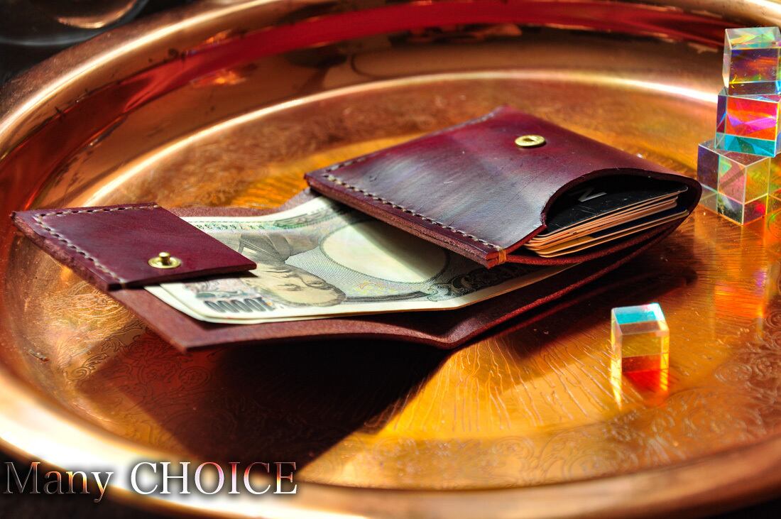 イタリアンレザー・帝王ブッテーロ・・ミニマム札カード財布(葡萄酒)