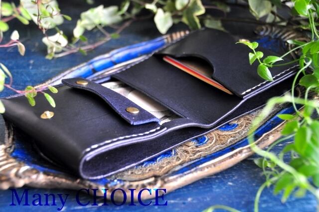 イタリアンバケッタ・エルバマット・コンパクト2つ折り財布(紺)