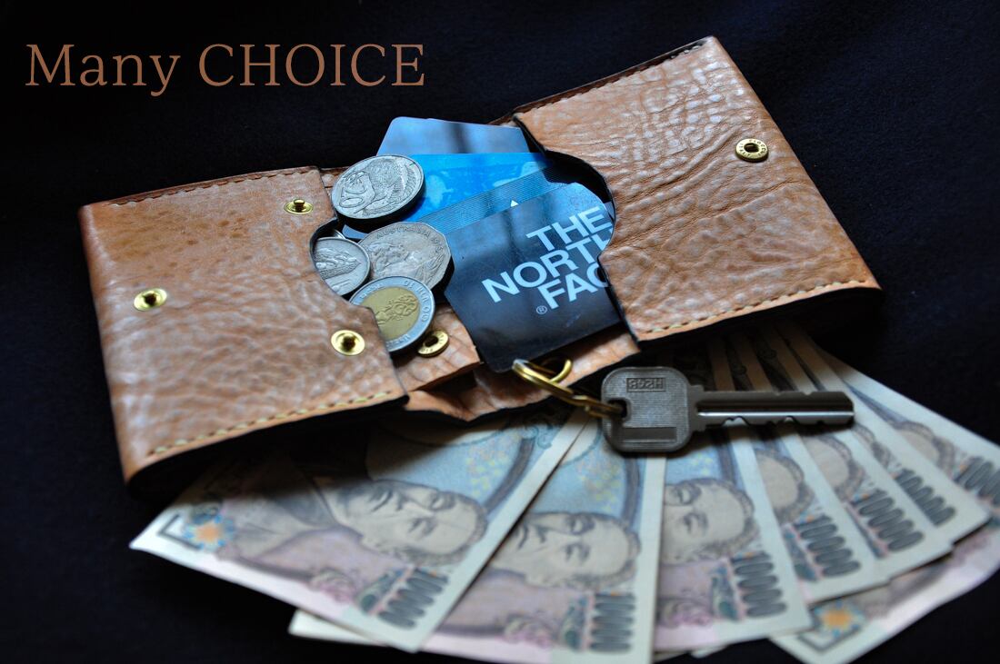 キーリングは、お札側にも、小銭側にも鍵を収納できる位置につけてあります。