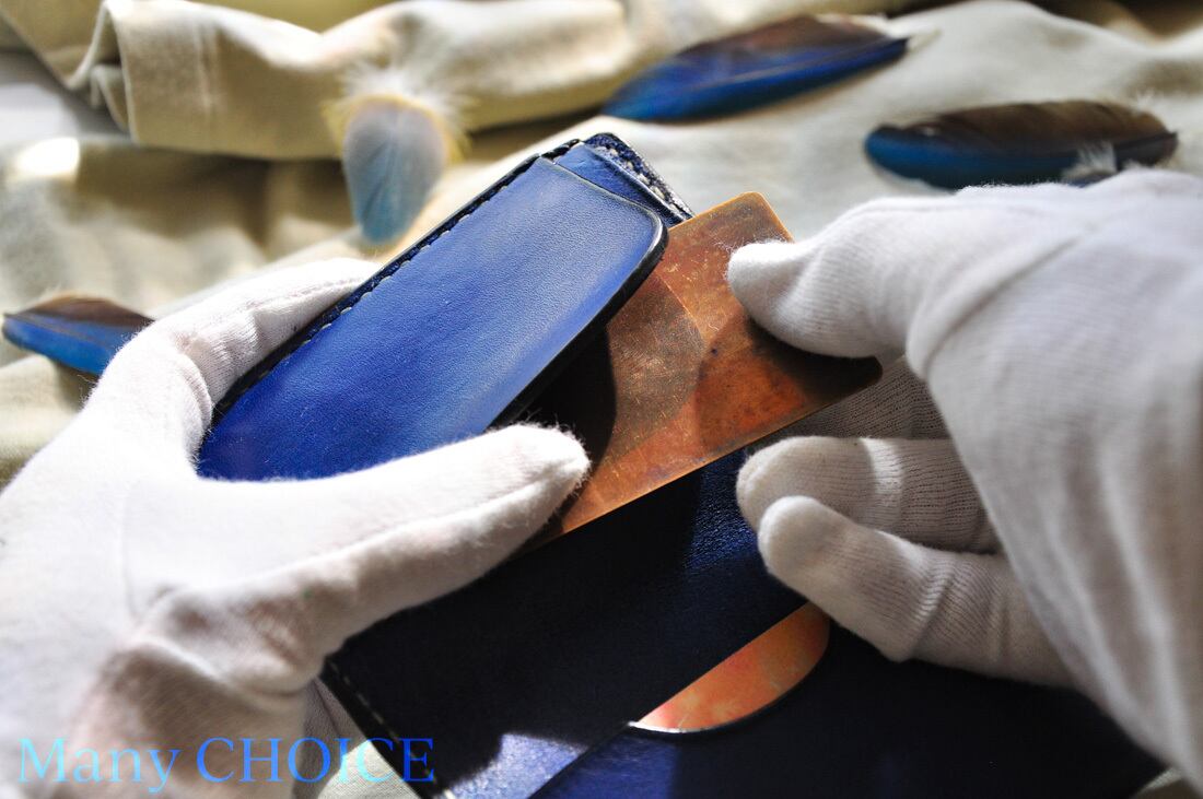 磨き上げていきます。コバにも、染色して、磨き上げています。
