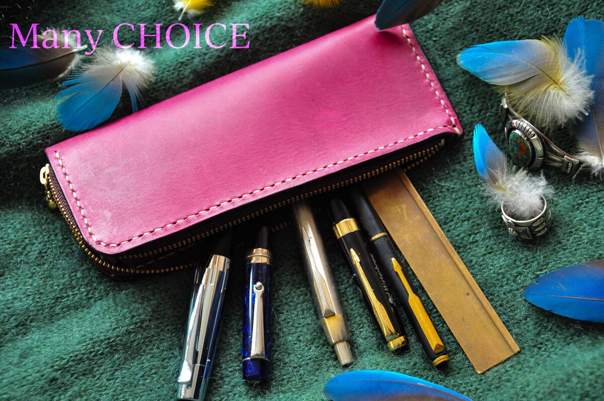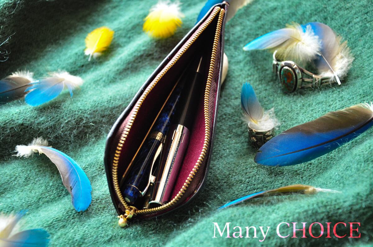イタリアンオイルバケッタレザー・L型ペンケース(葡萄酒)