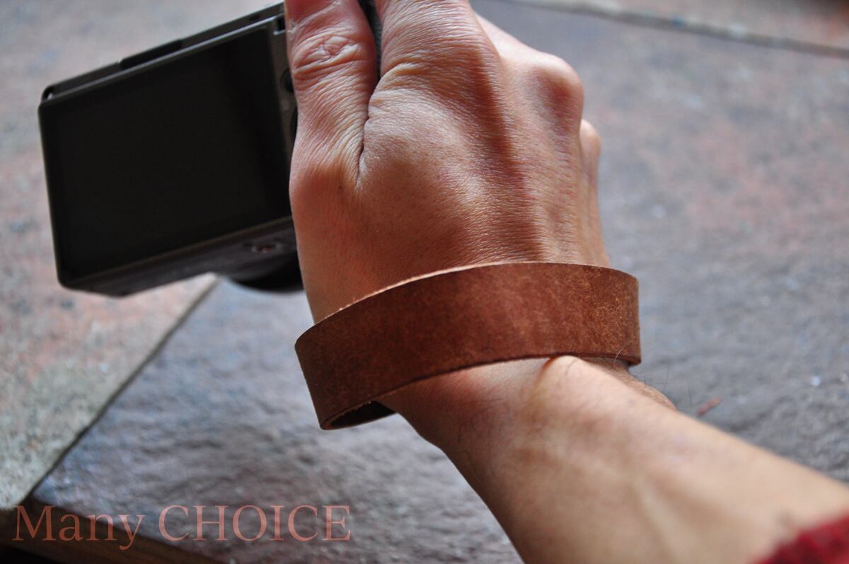 幅がやや広く、手首に食い込みません。