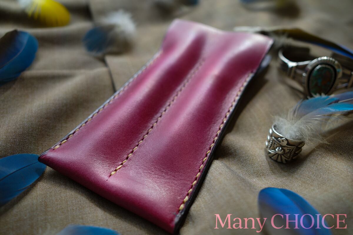 イタリアンオイルバケッタレザー・2本差しペンケース(葡萄酒)