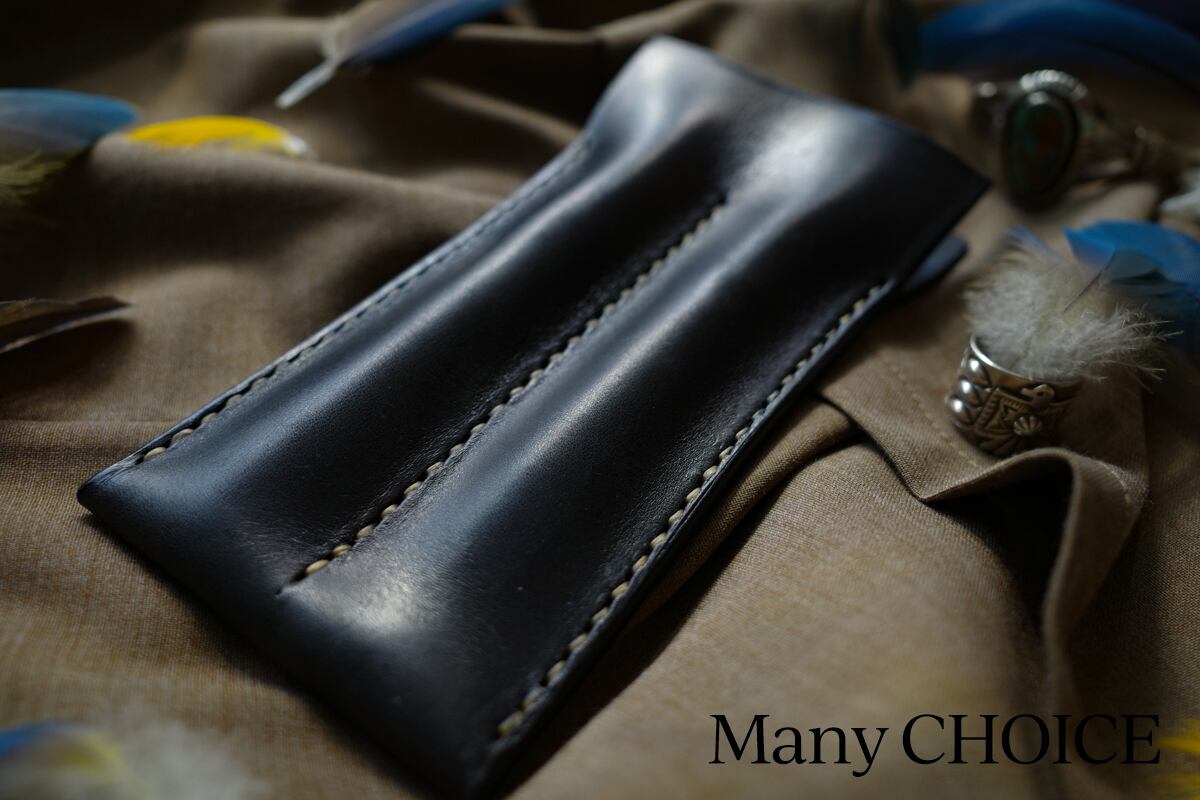 イタリアンオイルバケッタレザー・2本差しペンケース(黒)