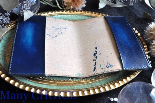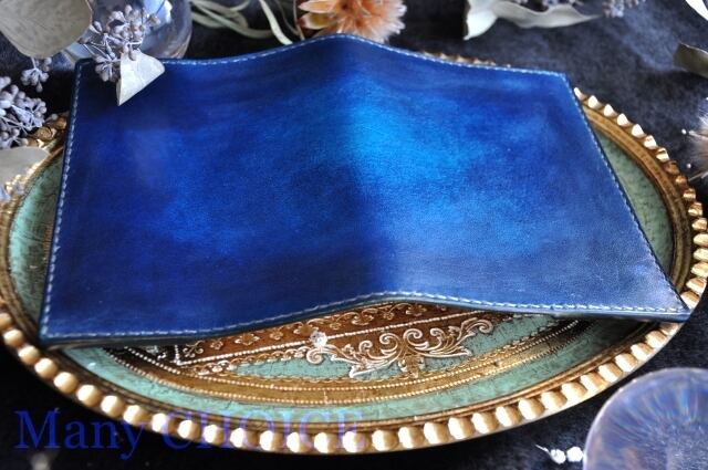 EUヌメ革・ ブックカバー・手染め(ブルー)