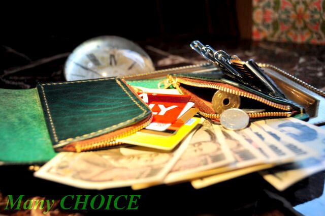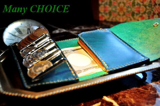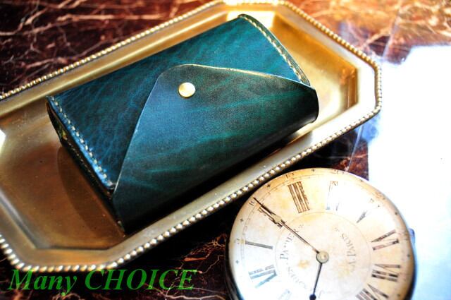 革の宝石ルガトー・二つ折りコインキャッチャー財布(緑)
