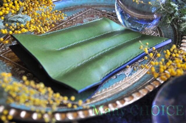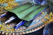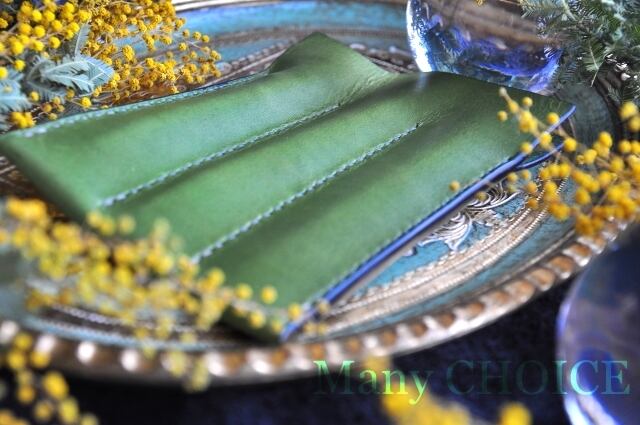 イタリアンバケッタ・エルバマット・3本差しペンケース(グリーンアップル)